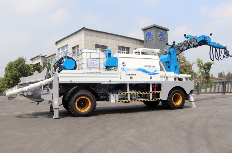 全液壓伸縮噴射臂適用于長(zhǎng)距離、大高度濕噴場(chǎng)地。前置的機(jī)械臂相較汽車底盤噴射機(jī)組,具有臂架噴射范圍更大,噴射盲區(qū)小的特點(diǎn)。